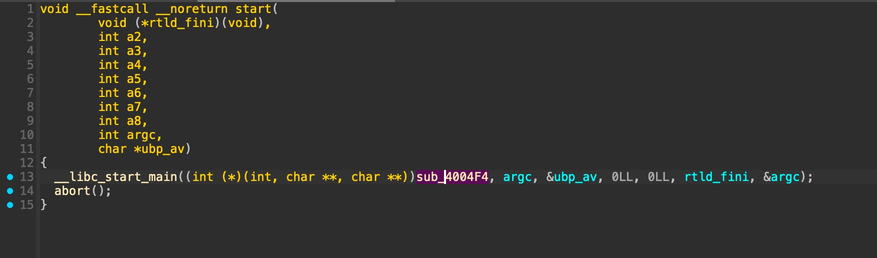 Given ELF file, open it using IDA. Through dynamic analysis we able to recover some of the function names.