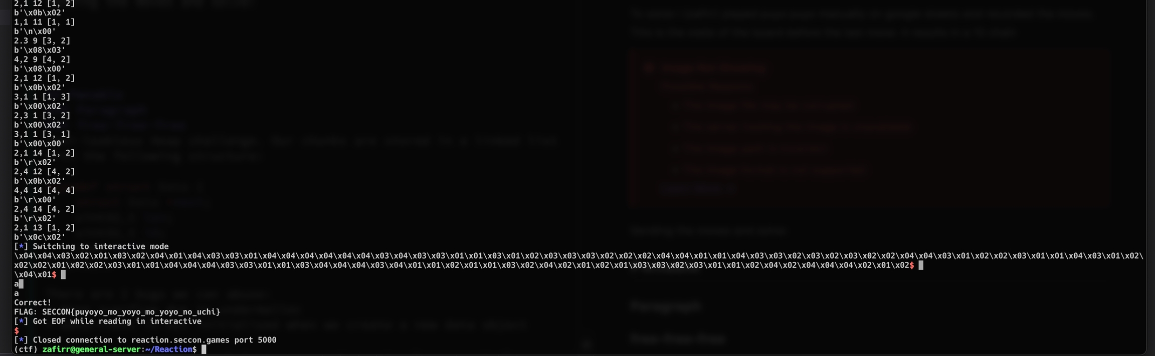r = remote("reaction.seccon.games", 5000)